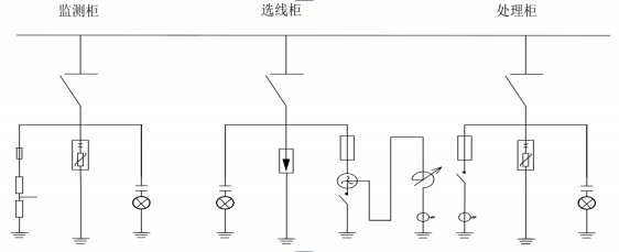 單相接地故障管理系統(tǒng)主要由3面開關(guān)柜構(gòu)成,分別具有選線,處理及監(jiān)測功能:成套裝置主要由接地變壓器、消弧線圈、高壓單極真空開關(guān)、高壓真空接觸器、高能抑制電阻、智能選線控制器、寬頻電壓傳感器,全電壓監(jiān)測單元等核心元器件組成
