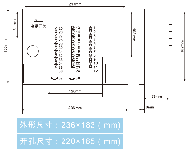 工作電源:AC85V-AC265V:DC220V;DC110V